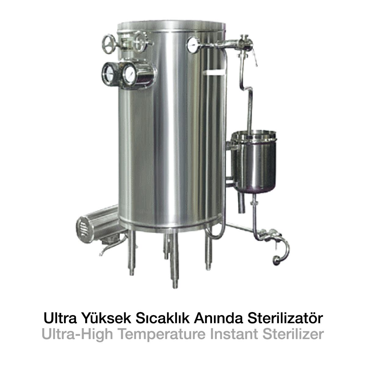 - Ultra Yüksek Sıcaklık (UHT) Sterilizatörü: Süt, soya sütü gibi ürünlerde de kullanılabilir. 1–10 ton/saat kapasiteyle çalışır.